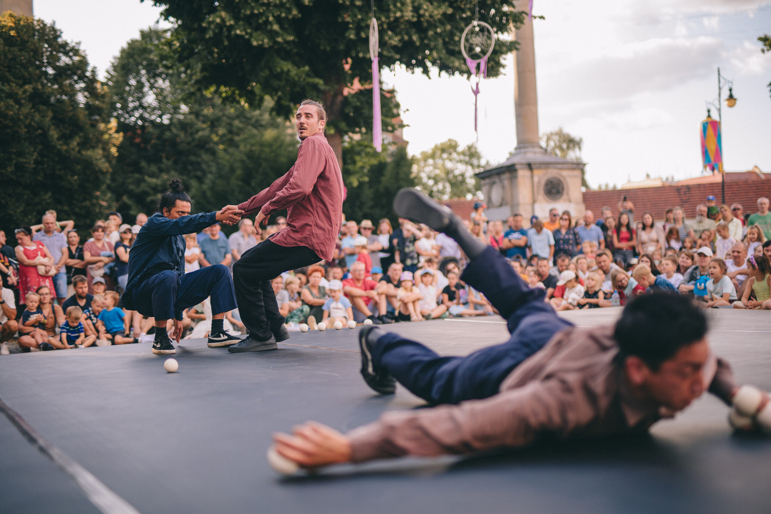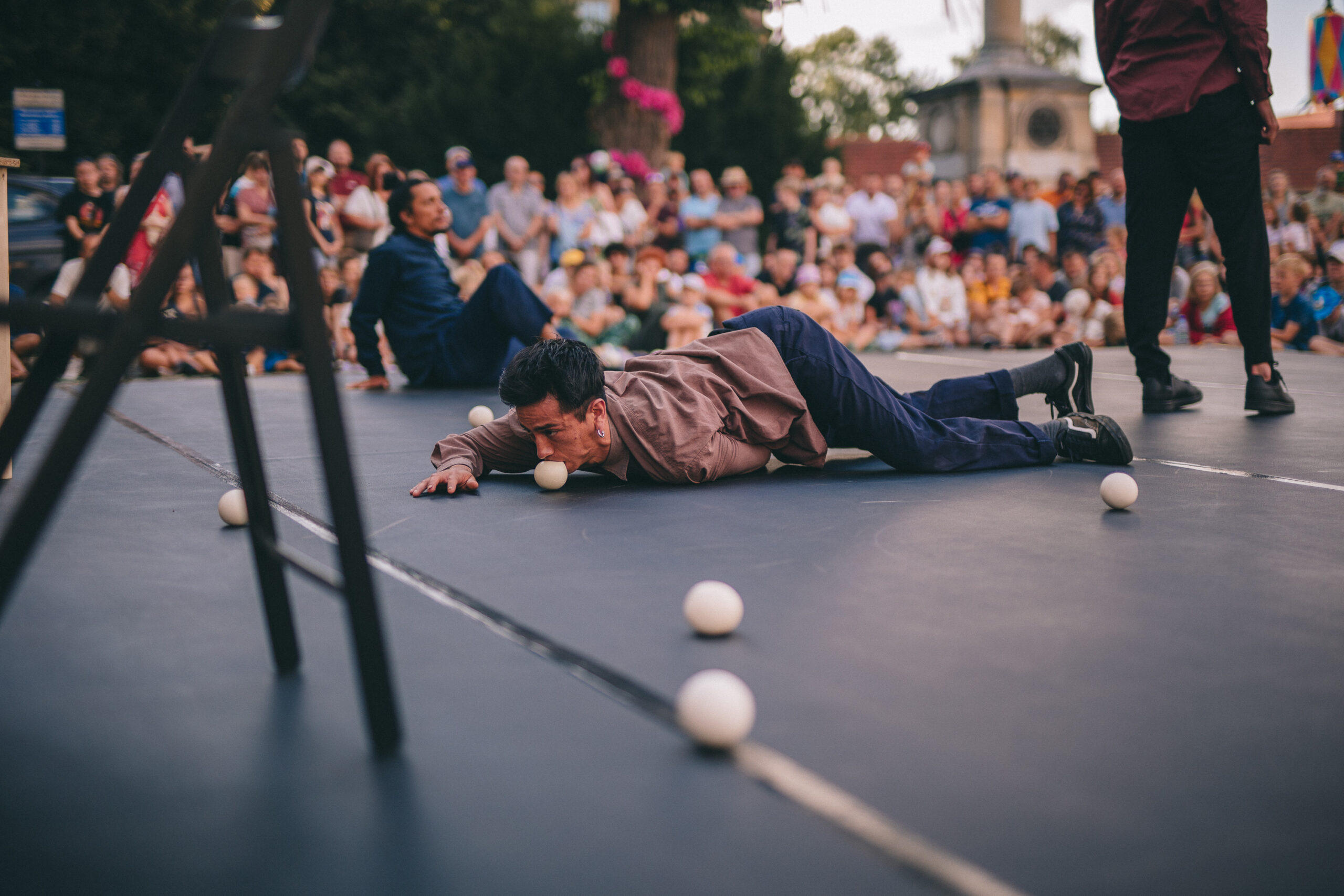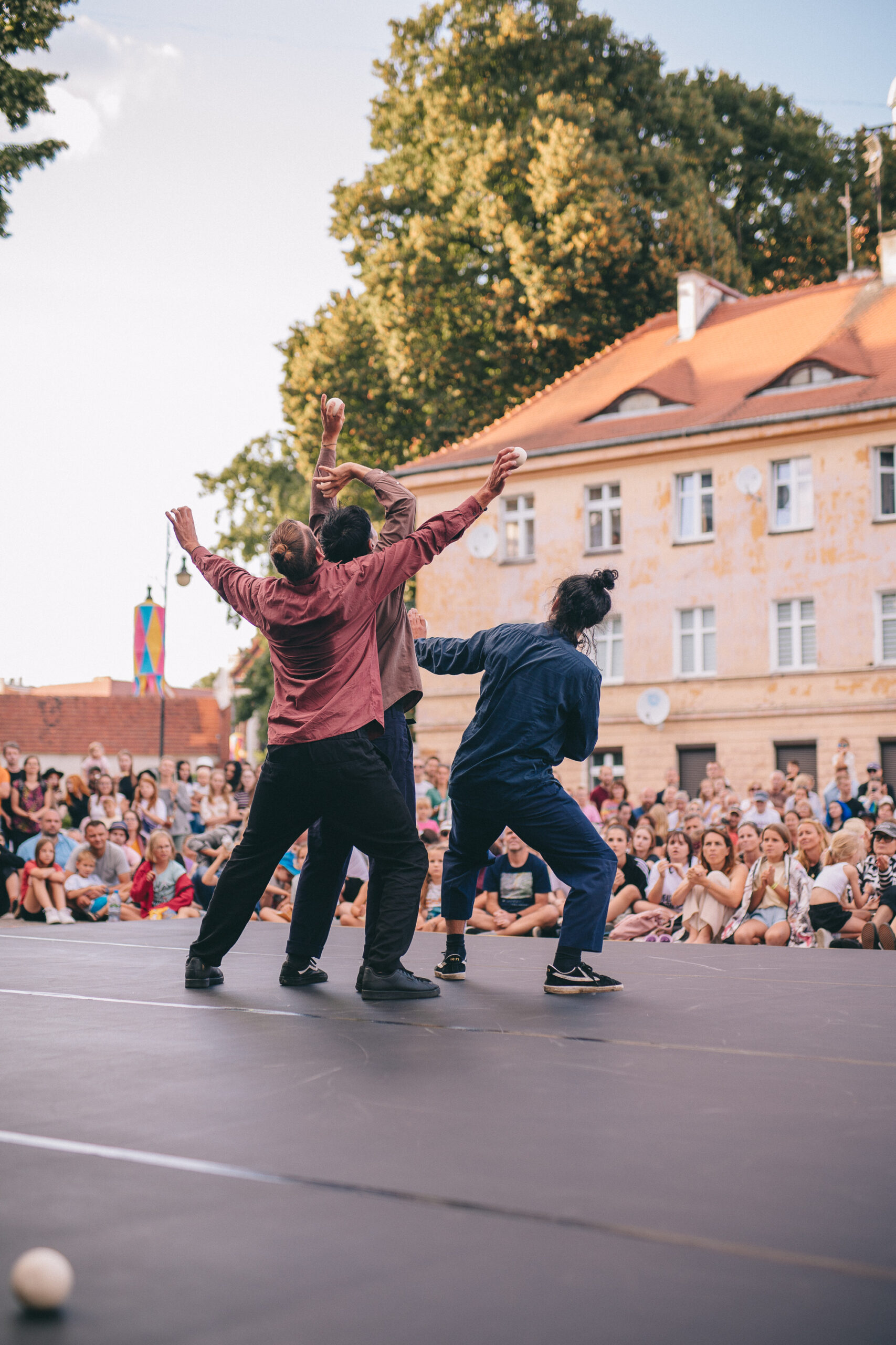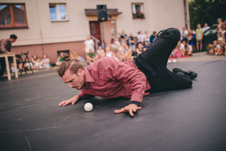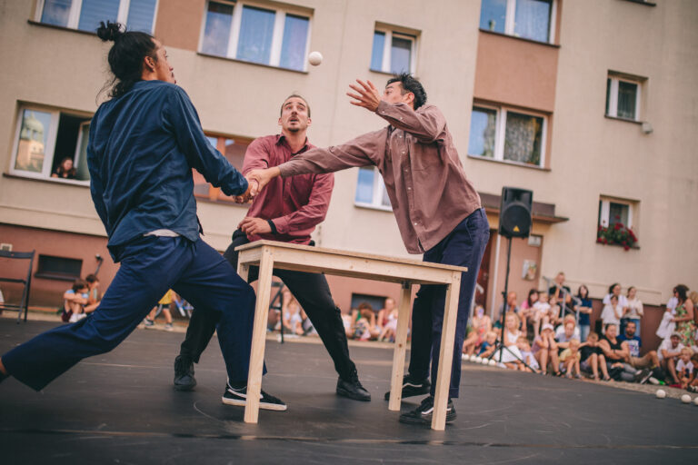 Trois individus se retrouvent dans un espace imaginaire restreint, évoquant leur propre maison ou peut-être une chambre partagée. À l’intérieur de cet espace, divers objets sont disposés, tels qu’une table, deux chaises et de nombreuses balles de jonglage. Avec l’ajout d’un musicien versatile, les relations entre les personnages et leur interaction avec ces objets sont rythmées par une dimension musicale subtile et adaptée. Cette collaboration les aide à échapper à leur routine quotidienne, les confrontant à leurs questionnements et à leurs peurs tout en explorant un langage soutenu par le mouvement.